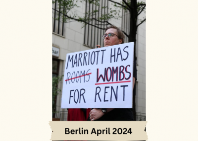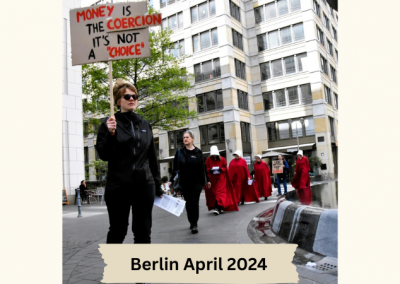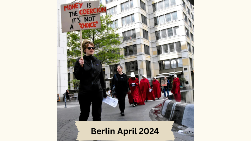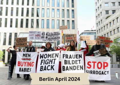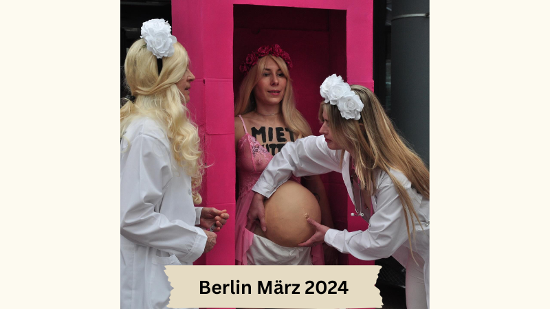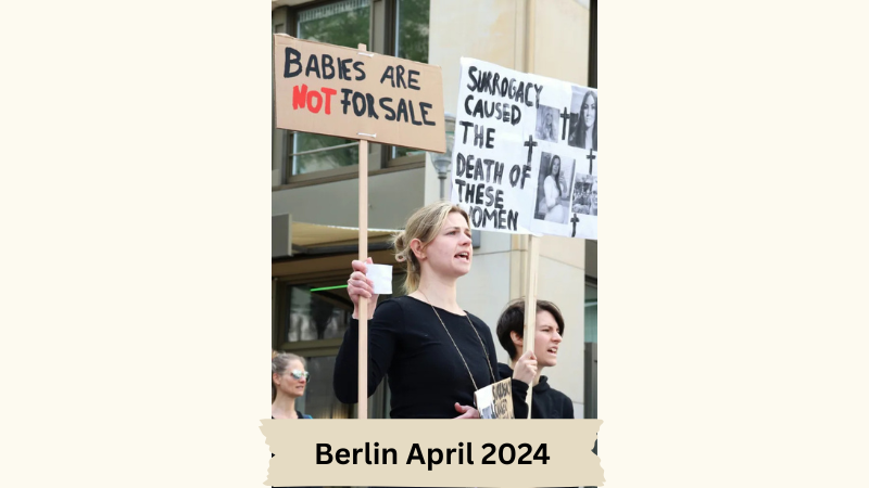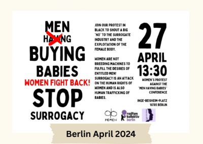 - 27. April 2024: Demo gegen „Men Having Babies“ in Berlin, organisiert von Radfem Kollektiv Berlin, FEMEN Deutschland und der Terre des Femmes Städtegruppe Berlin unter dem Titel “Men Having BUYING Babies – WOMEN FIGHT BACK!”