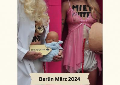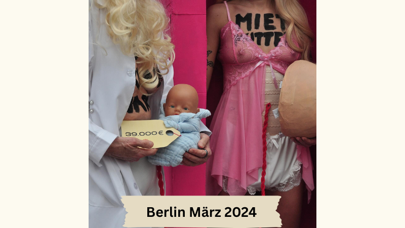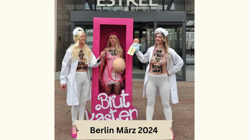 - 2. März 2024: Zwei Proteste gegen „Wish for a Baby“ in Berlin, mit Protestaktion von FEMEN Deutschland und Demo von Radfem Kollektiv Berlin. 1, 2, 3, 4, 5