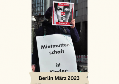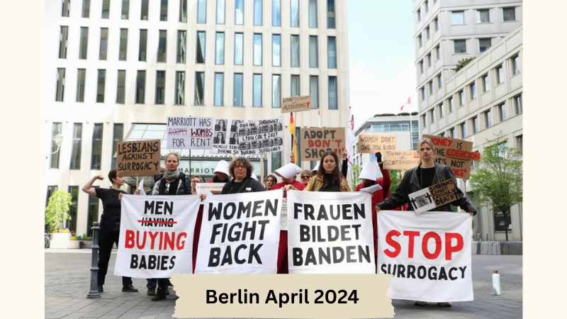 - Der „Marsch für das Leben“ in Berlin und Köln (z. B. 2023) integriert die Kritik an der Leihmutterschaft in seine Anti-Abtreibungs-Demonstrationen, wo Frauen als „Gebärmaschinen“ dargestellt werden.