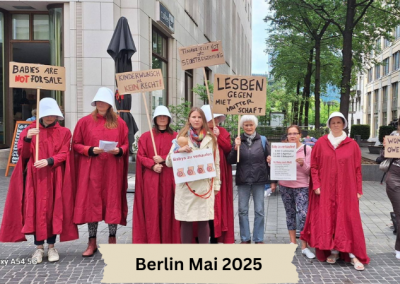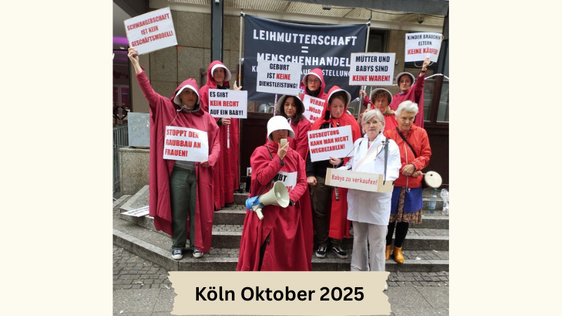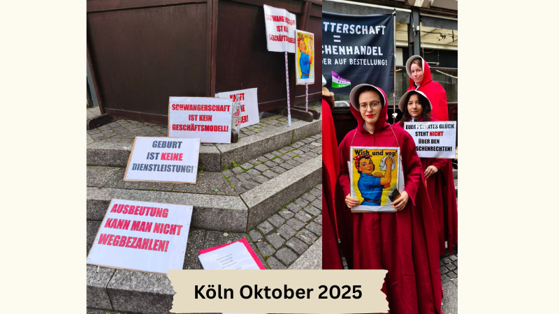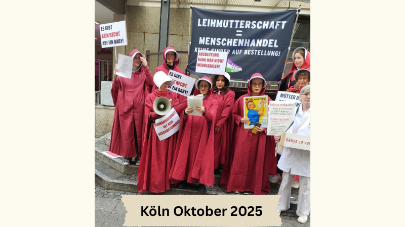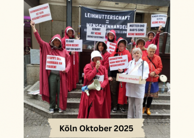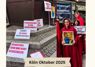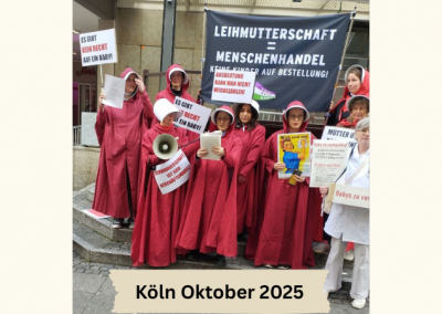 - Oktober 2025: Demo gegen „Wish for a Baby“ in Köln, organisiert von unserer Initiative “Lasst Frauen Sprechen!”. Frauenheldinnen e. V. organisieren juristischen Widerstand. Hier ein Artikel von Emma Magazin.