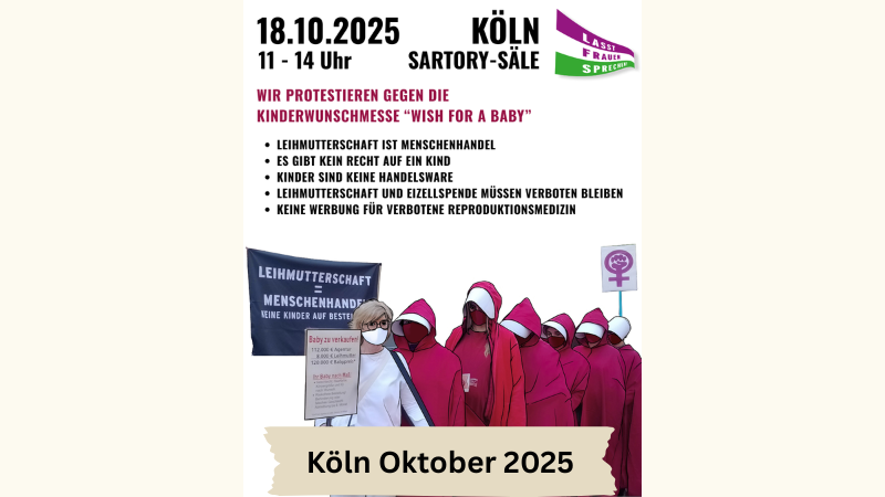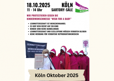 - 18. Oktober 2023: Demo gegen „Wish for a Baby“ in Köln, organisiert von unserer Initiative “Lasst Frauen Sprechen!”